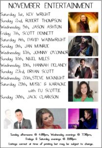 Entertainment listings for the Victoria bar. Don’t forget we also host Steve Mulligan’s Sunday night quiz in the Victoria bar from 8:30 pm